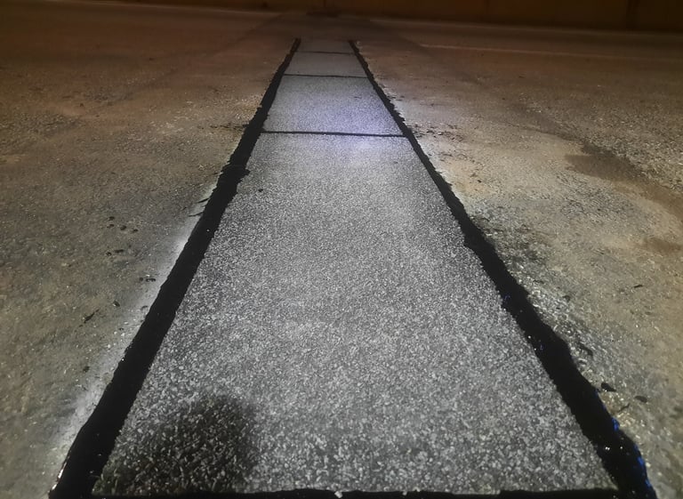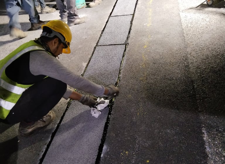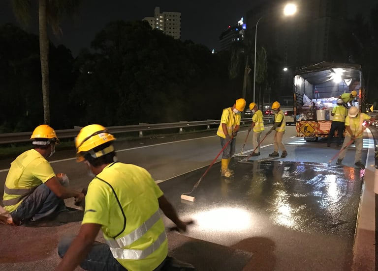 Comprehensive anti-skid surface treatment across 45km of critical highway sections, significantly improving road safety during wet conditions.